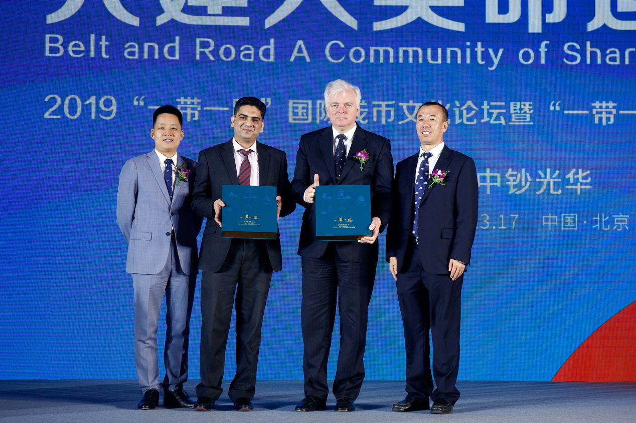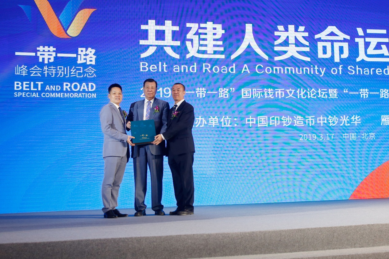 2019年3月17日,“共建人类命运共同体”——2019“一带一路”国际钱币文化论坛暨《一带一路国家钱币纪念册》上市新闻发布会在北京雁栖湖国际会议中心隆重召开。外交部前部长助理武韬,上海合作组织前副秘书长王开文,中央美院客座教授、文化部文化市场司前副司长张新建,斯洛伐克驻华大使Dusan Bella,巴基斯坦驻华大使馆参赞Yasir Sultan,中钞光华印制有限公司董事长毛维钧,南京造币有限公司党委书记梅桂芳,中国钱币博物馆前馆长戴志强,中国邮政邮票印制局前副局长芮书香,中钞光华印制有限公司副总经理李晶,南京造币有限公司资深经理俞建平,中钞光华印制有限公司营销总监魏涛,南京苏泉工贸董事长周兵,《一带一路国家钱币纪念册》发行代表付俊玮先生,以及来自全国的文创企业家等百余位嘉宾出席了发布会。毛维钧、王开文、武韬、张新建、戴志强、梅桂芳分别致辞。