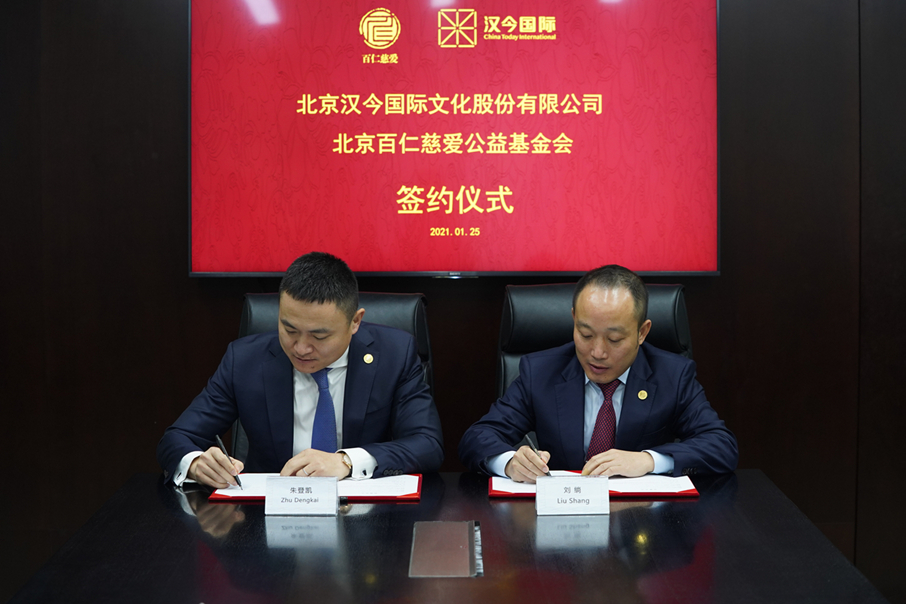 2021年1月25日上午,北京汉今国际文化股份有限公司董事长刘绱先生到访北京百仁慈爱公益基金会,并就如何进一步支持乡村教育发展进行了座谈。